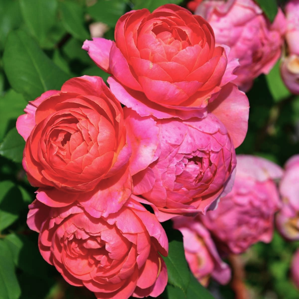 Róża, która wygląda jak przeniesiona z obrazów starych mistrzów. Kuliste, malinowe kwiaty z pomarańczowym sercem i jaśniejszymi refleksami na spodniej stronie płatków, rozkwitają w bukietach po 5 – 7 sztuk. Zapach łączy aromaty arbuza, bzu i wanilii z delikatną, balsamiczną nutą. Kwiaty długo utrzymują sie na krzewie, nie więdną w upały i dobrze znoszą wilgotną pogodę.