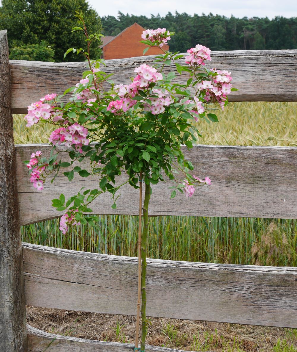 Ballerina – róża parkowa w formie szczepionej na pniu. Niezwykle długo kwitnąca odmiana z grupy mieszańców piżmowych. Tworzy pozbawione kolców pędy, na których licznie pojawiają się drobne kwiatki. Kształt korony przypomina parasol.