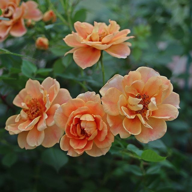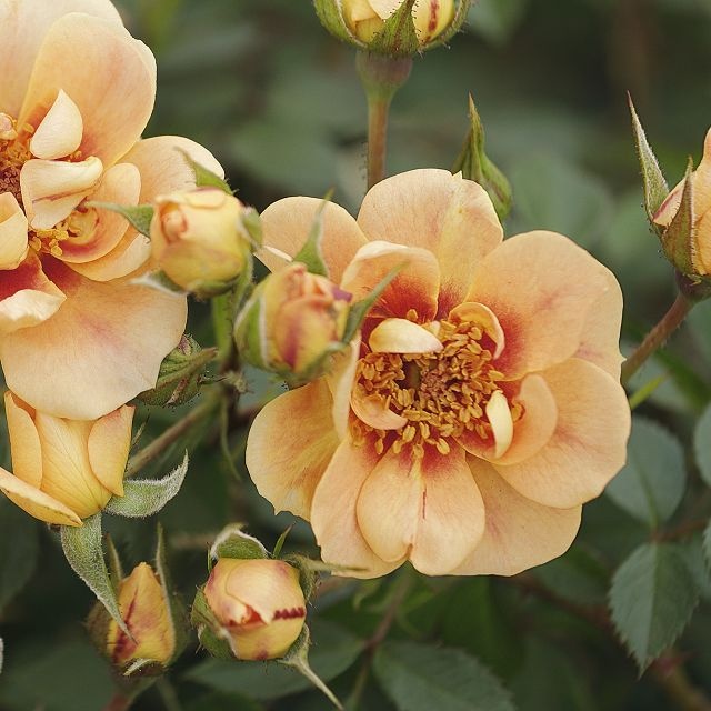 Ciekawa róża okrywowa w intensywnym bursztynowym kolorze z ciemniejszym środkiem. Nowość w serii.