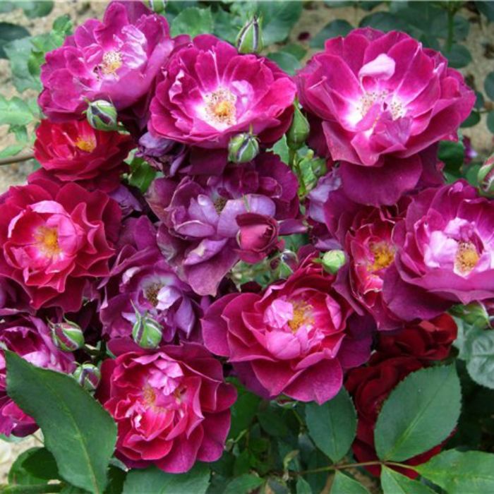 Róża parkowa o kwiatach barwy stanowiącej intrygującą i rzadko spotykaną mieszankę koloru fioletowego i bordowego, przypominająca mocno różę francuską Cardinal de Richelieu. Kwiaty lekko kuliste, zebrane w niewielkie grona roztaczają wyraźny piżmowy zapach z nutą owoców i cynamonu. Tworzy szerokie, rozłożyste krzewy o pędach z nielicznymi kolcami. Może być prowadzona przy podporze jako róża pnąca.  Odmiana o wielu wartościowych cechach, odporna na niekorzystne warunki atmosferyczne, bardzo dobrze zimująca i niewrażliwa na choroby. Udaje się na słabszych stanowiskach, toleruje miejsca półcieniste, a przy tym kwitnie obficie cały sezon. Jesienią tworzy liczne pomarańczowe owoce.