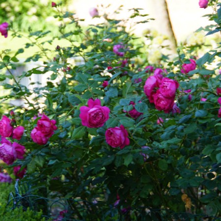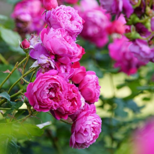 Pełne, zaokrąglone kwiaty tej okazałej róży, zebrane w wiechy po 3 – 5 sztuk, mają wyrazistą, fuksjowo fioletową barwę z odcieniami karmazynu. Roztaczają mocny, cytrusowy zapach, który utrzymuje się także po ścięciu kwiatów do wazonu.