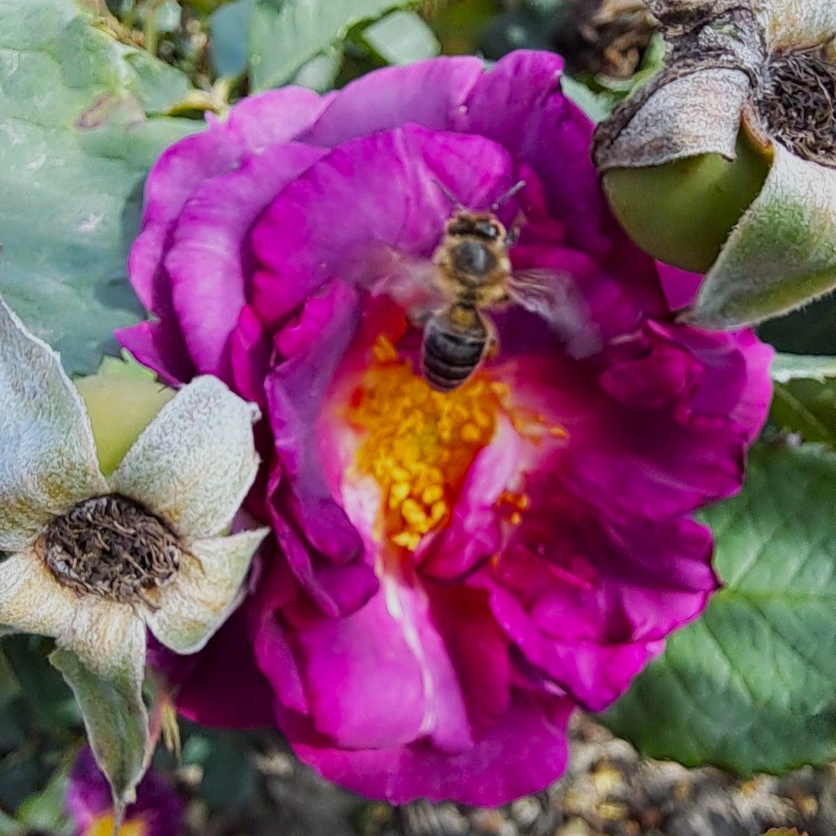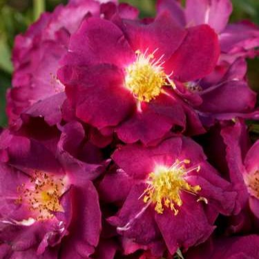 Róża wyjątkowo okazała, o mocnych, wyprostowanych gałęziach i dużych, szeroko otwartych kwiatach w głębokim odcieniu fioletu, z wyraźnymi, złocistymi pręcikami w środku. Kwiaty mają intensywny, korzenno przyprawowy zapach. Strzeliste krzewy, w sprzyjających warunkach i prowadzone bez przycinania, mogą osiągać znaczne rozmiary i wyrastać nawet do 5m.