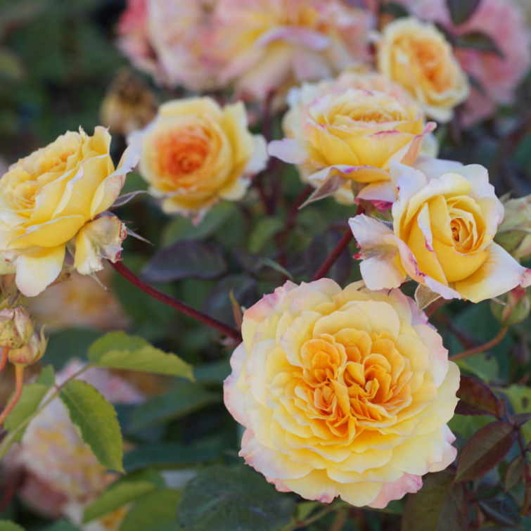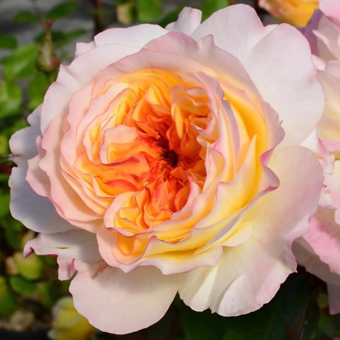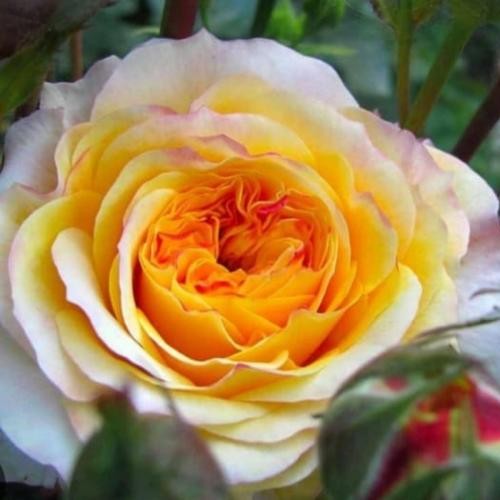 Niewysoka, nowoczesna róża o dużych kwiatach, gęsto wypełnionych szfranowożółtymi płatkami o karminowych brzegach. Kwiaty zmieniają kolor w miarę rozwoju pąka i nabierają łagodniejszych, kremowo żółtych odcieni. Mają wyrazisty zapach, waniliowy z nutami cytrusów i goździków. Rozmieszczone są przeważnie od 1-3 na pędzie. Utrzymują dobry wygląd na krzewie przez kilka dni, niezależnie od pogody.