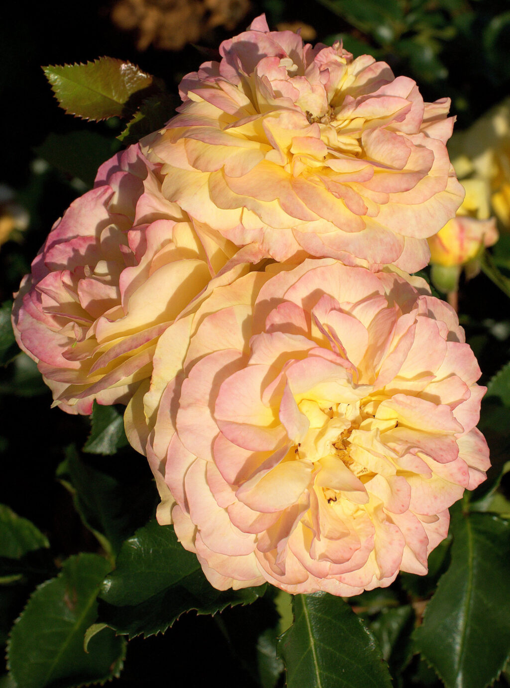 Silna, żywotna odmiana o grubych pędach i pełnych, kulistych kwiatach, zebranych po kilka sztuk. Liście ma ciemnozielone, bardzo zdrowe, kontrastujące z żywą barwą kwiatów.