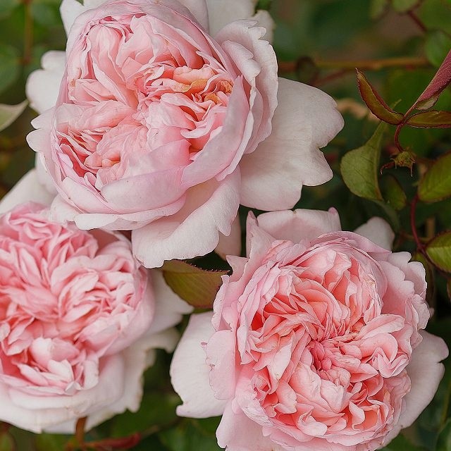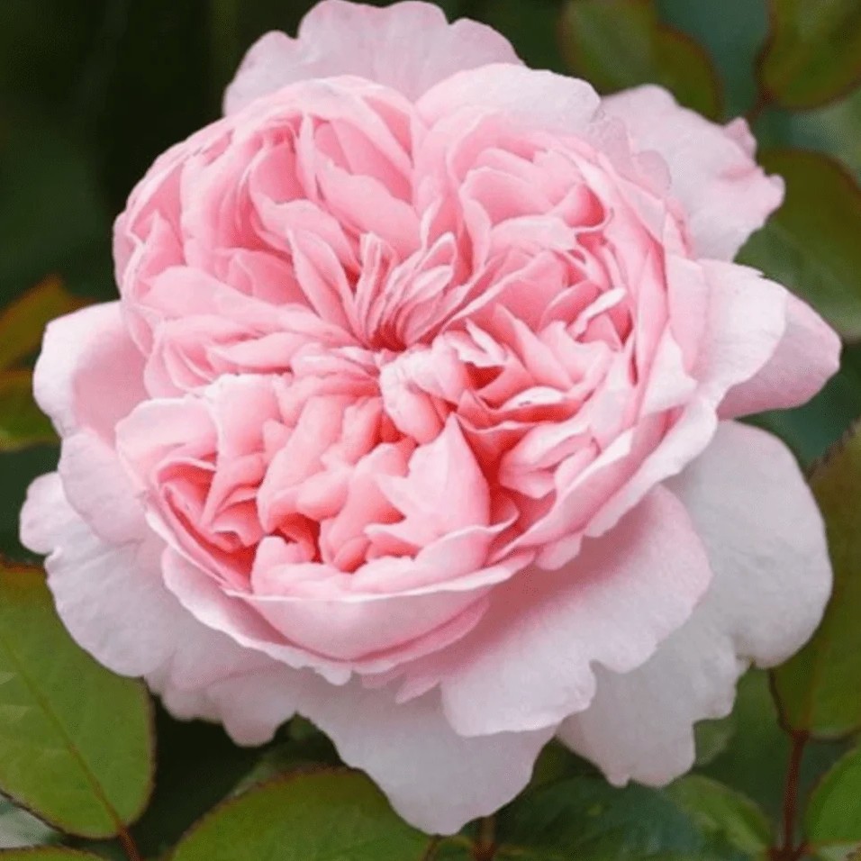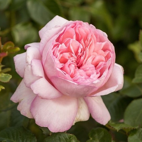 Efektowna róża o staromodnym, romantycznym uroku i cudownym, słodkim zapachu. Duże, kuliste kwiaty są gęsto wypełnione pastelowo różowymi płatkami z perłowo kremowym, nieregularnym zewnętrznym okółkiem.