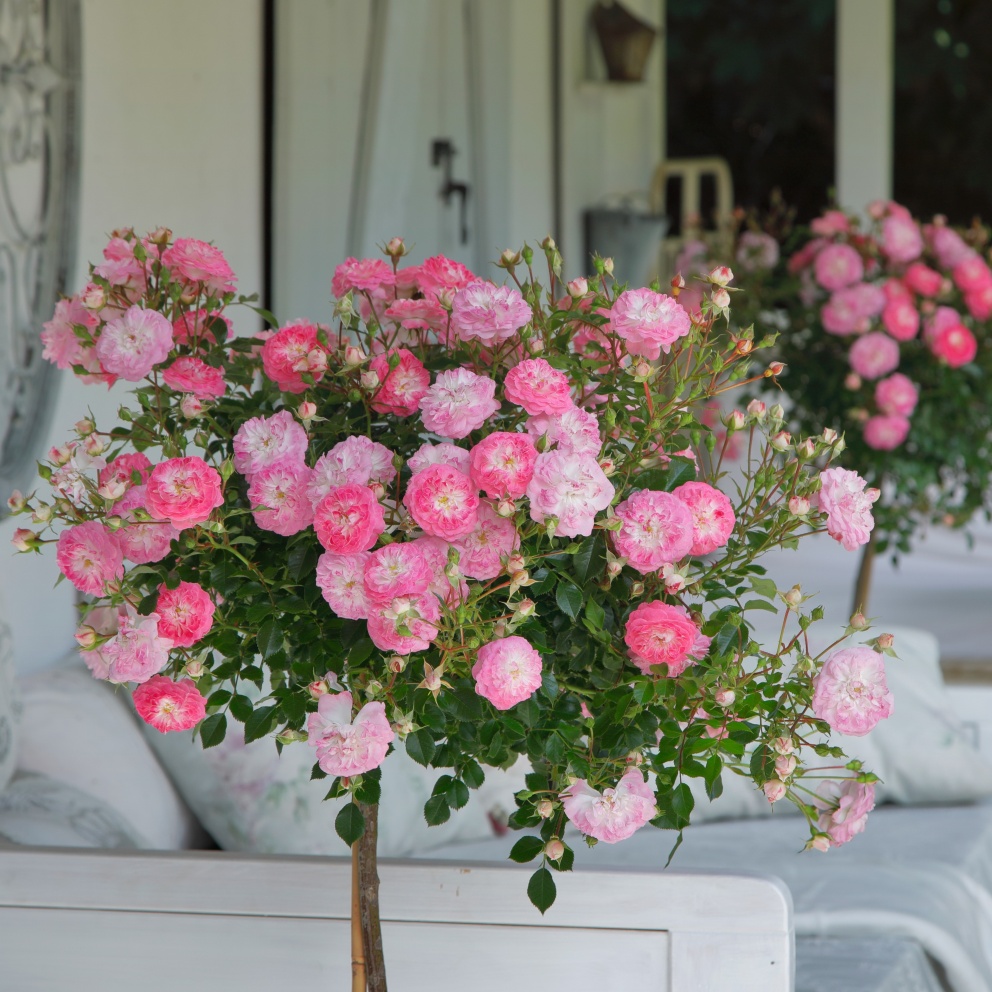 Pinocchio® róża miniaturowa w formie szczepionej na pniu. Charakteryzuje się kompaktowym wzrostem oraz świetną zdrowotnością. Przez większość sezonu aż do przymrozków, krzewy obsypane są zebranymi w grona, trwałymi kwiatami w delikatnym różowo-liliowym kolorze. Przyjemnie pachnące, z wyraźnymi pręcikami, chętnie odwiedzane są przez owady. Tworzy niezbyt dużą koronę w kulistym kształcie.