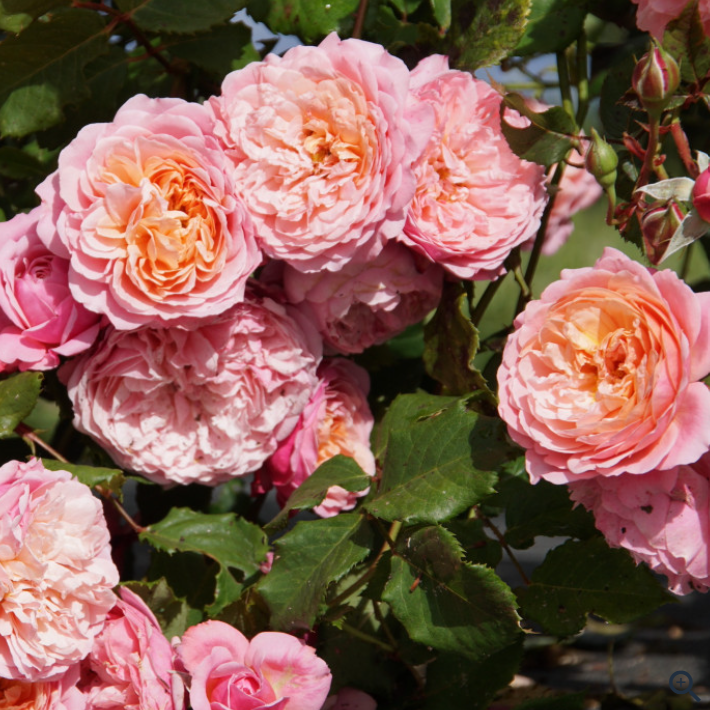 Róża, łącząca romantyczny urok dawnych odmian z nowoczesną kolorystyką i niezawodnym kwitnieniem. Bardzo pełne kwiaty liczące po 60-80 płatków, w odcieniach różu z miodowo miedzianymi refleksami wypełniają ogród cudownym aromatem z nutami jaśminu, wanilii, konwalii i róży.