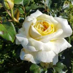 Nowoczesna róża o romantycznej urodzie starych róż ogrodowych. Z pełnych pąków rozwijają się okazałe kwiaty o wewnętrznych płatkach w delikatnym, maślanym odcieniu który stopniowo przechodzi w biel, nadając kwiatom promienny, słoneczny charakter. Całości dopełnia mocny, pełen słodyczy zapach z wyraźnymi nutami cytrusów.