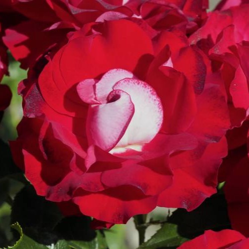 Śliczna róża rabatowa o efektownych kwiatach w kolorze aksamitnej, ciepłej czerwieni ze srebrzystym rewersem płatków. Barwa ta nie płowieje i utrzymuje żywy odcień nawet na bardzo naslonecznionych stanowiskach. Dodatkowym atutem jest delikatny, świeży zapach oraz długie i obfite kwitnienie.