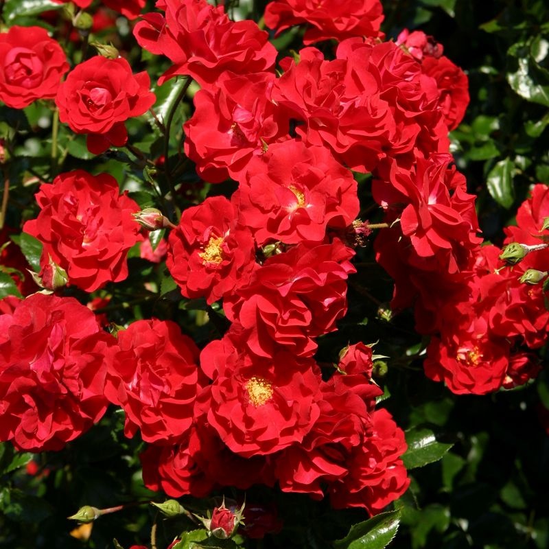 Pierwszorzędna róża okrywowa, o wyjątkowym wigorze i odporności. Kwitnie nieprzerwanie przez cały sezon, tworząc niewiarygodne ilości kwiatów w kolorze jaskrawej czerwieni z licznymi, żółtymi pręcikami w środku. Chętnie odwiedzana przez pszczoły i inne pożyteczne owady. Krzewy gęste, mocno rozgałęzione, o pokładających się pędach i pokroju typowym dla tej grupy róż. Odmiana o szerokim zastosowaniu, nadająca się na rabaty do ogrodów przydomowych, doskonała do donic na balkony i tarasy, a szczególnie polecana na duże miejskie klomby. Wyjątkowo odporna na choroby, w 2015 roku uzyskała certyfikat ADR.