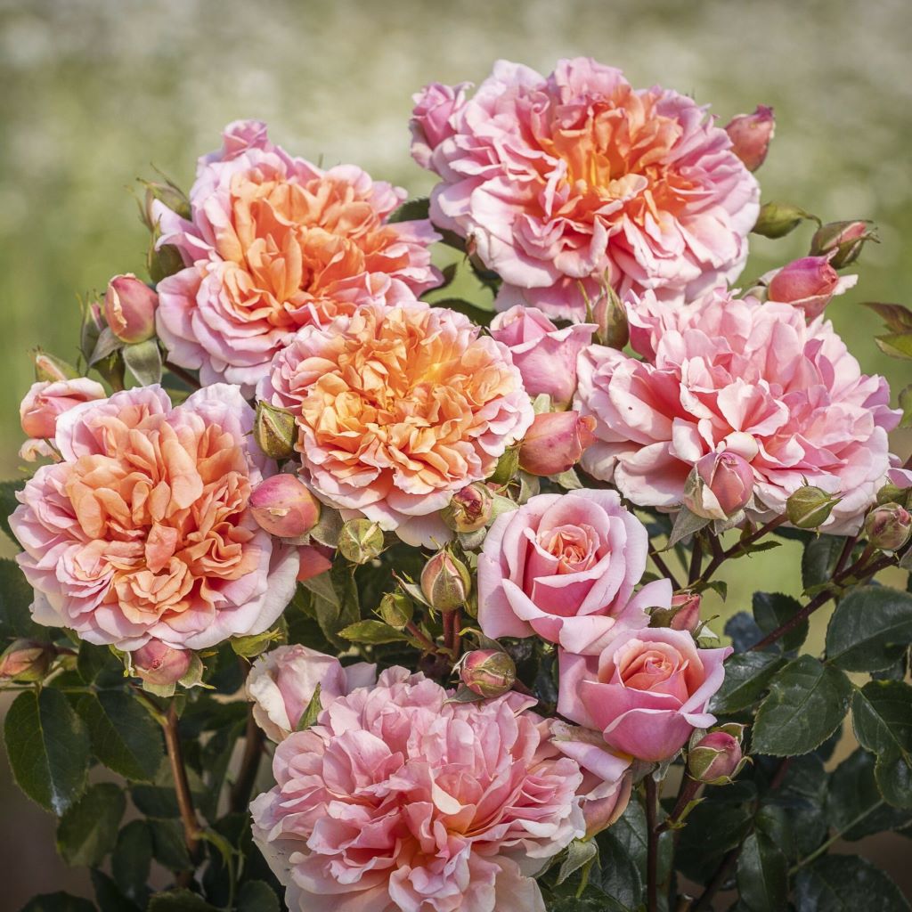 Róża rabatowo-parkowa w ciepłym, morelowym kolorze, kwitnąca do późnej jesieni.
