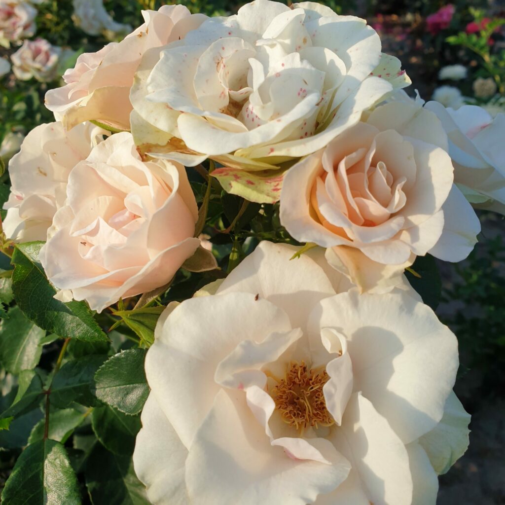 Wysoka zdrowotność, krzewy bardzo długo utrzymują kwiaty. Ich barwa jest białoróżowa z czasem nabiera odcieni pistacji. W jesienne słoty kwiaty przebarwiają się na różowo. Klasyczna róża rabatowa o żelaznej odporności na choroby.