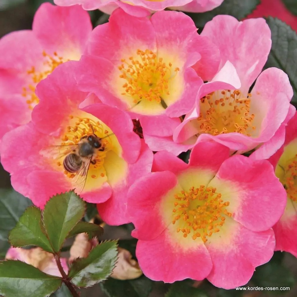 Róża zwana po polsku Calineczką, należy do miododajnej serii Nectargarden® – grupy róż, które przyciągają pszczoły i inne owady zapylające.
