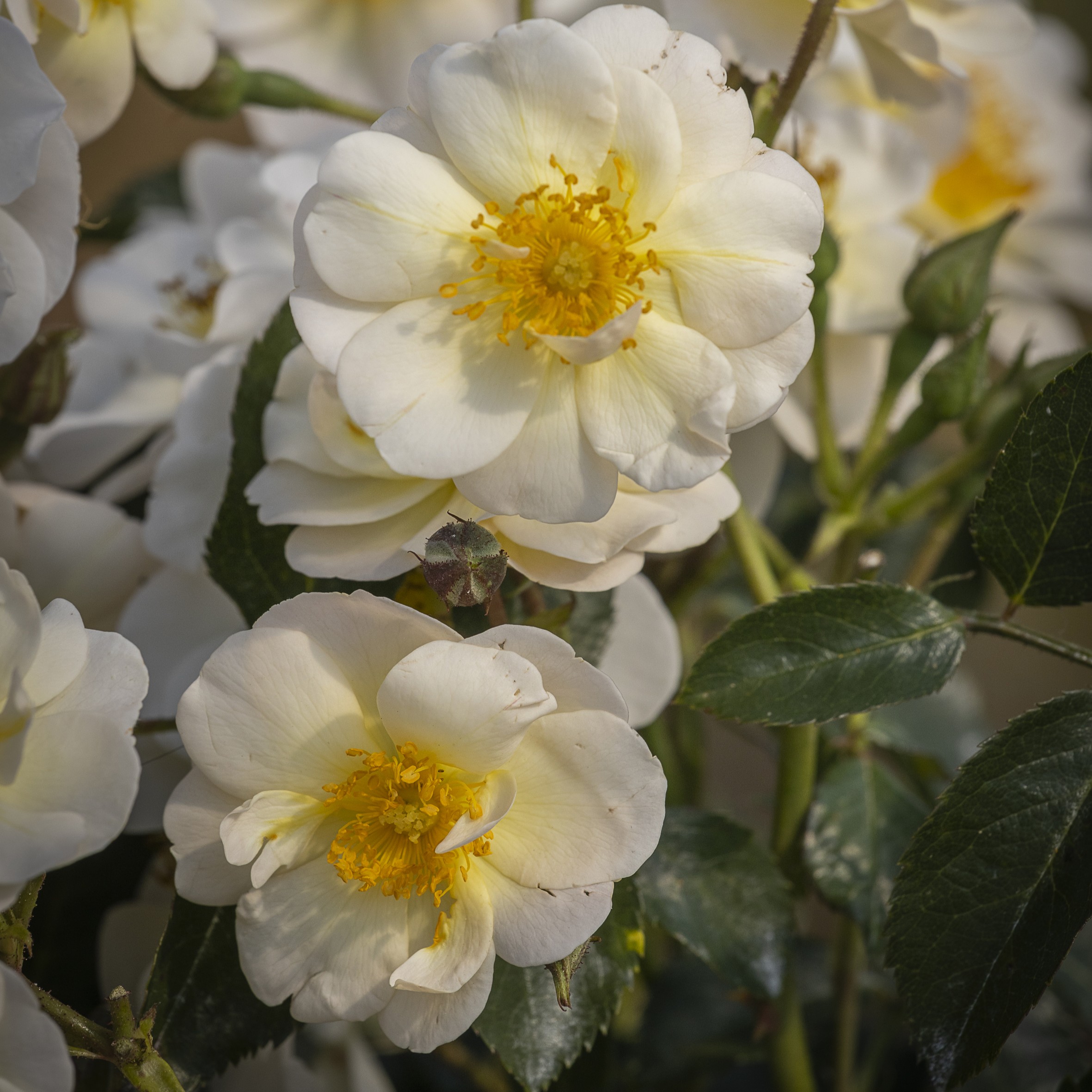 Róża pełna naturalnego piękna, w swojej prostocie przypominająca dziko rosnące odmiany. Z żółtych pąków wyłaniają się liczne kwiaty zebrane w wiechach, które po rozwinięciu uzyskują czysto białą barwę. Mają silny zapach piżma z wyczuwalną nutą drewna z dodatkiem sosnowej żywicy pomieszanej z zapachem starej szuflady.